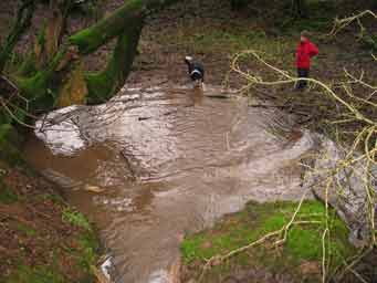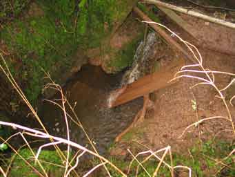 Originally explored and briefly dug by WCC in 1961, by ourselves (Pete, Nick & Graham) in 1972, and by others unknown in 1993, work has recommenced at this site at the beginning of 2004. Presently the cave has two ends, the wet way where the stream disappears along a small passage which gradually decreases in size and would make a decidedly unpleasant digging prospect, and the dry way which ends in a narrow impenetrable rift beyond which can be heard flowing water. The obvious choice is currently being pursued with the aid of some chemical persuasion. Keys are normally available from Larkshall but the caves are temporarily closed (January 2013) whilst a new access arrangement is negotiated.